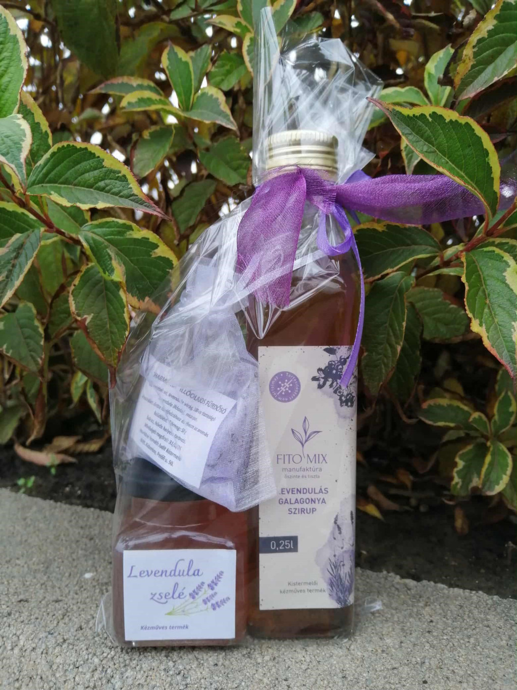 Levendulás kényeztetés egy csomagban Ez az ajándékcsomag a levendula nyugtató erejét hozza el a mindennapokba. A levendulás galagonya szörp finoman harmonizál, a levendulás fürdősó segít ellazulni egy hosszú nap után, míg a levendula zselé különleges, illatos és ízletes élményt nyújt. Tökéletes választás egy kis figyelmességhez vagy pihentető meglepetéshez. LEVENDULÁS GALAGONYA SZIRUP - prémium minőség Ha a szellemi vagy fizikai túlterhelés után egy kis kikapcsolódás hiányzik, ebben az egyedi kompozícióban a szíverősítőt a galagonya formájában magunkhoz vehetjük, s a megérdemelt pihenést és a nyugalmat egy csésze finom tea hozza el, a számtalan előnyös hatással bíró levendula kíséretében. A termék nem csupán ízesített szirup, a koncentráció az adott gyógynövény felhasználási javaslata alapján beállított mennyiségnek megfelelő. Összetétel: víz, méz, cukor, galagonya, levendula, aszkorbinsav. Ajánlás: 20 ml szörp 150 ml meleg vízhez adva gyógynövényteaként vagy hideg vízhez adva frissítőként fogyasztható. Tartósítószert nem tartalmaz. Felbontás után hűtve tárolandó. Üvegvisszaváltás lehetséges. Űrtartalom: 250 ml LEVENDULA ZSELÉ Összetétel: víz, cukor, levendula, pektin, citromsav. Térfogat: 120ml LEVENDULÁS FÜRDŐSÓ Összetétel: só, levendula virág, 100%-os levendula illóolaj, mica szinező por. Tömeg: 50 g