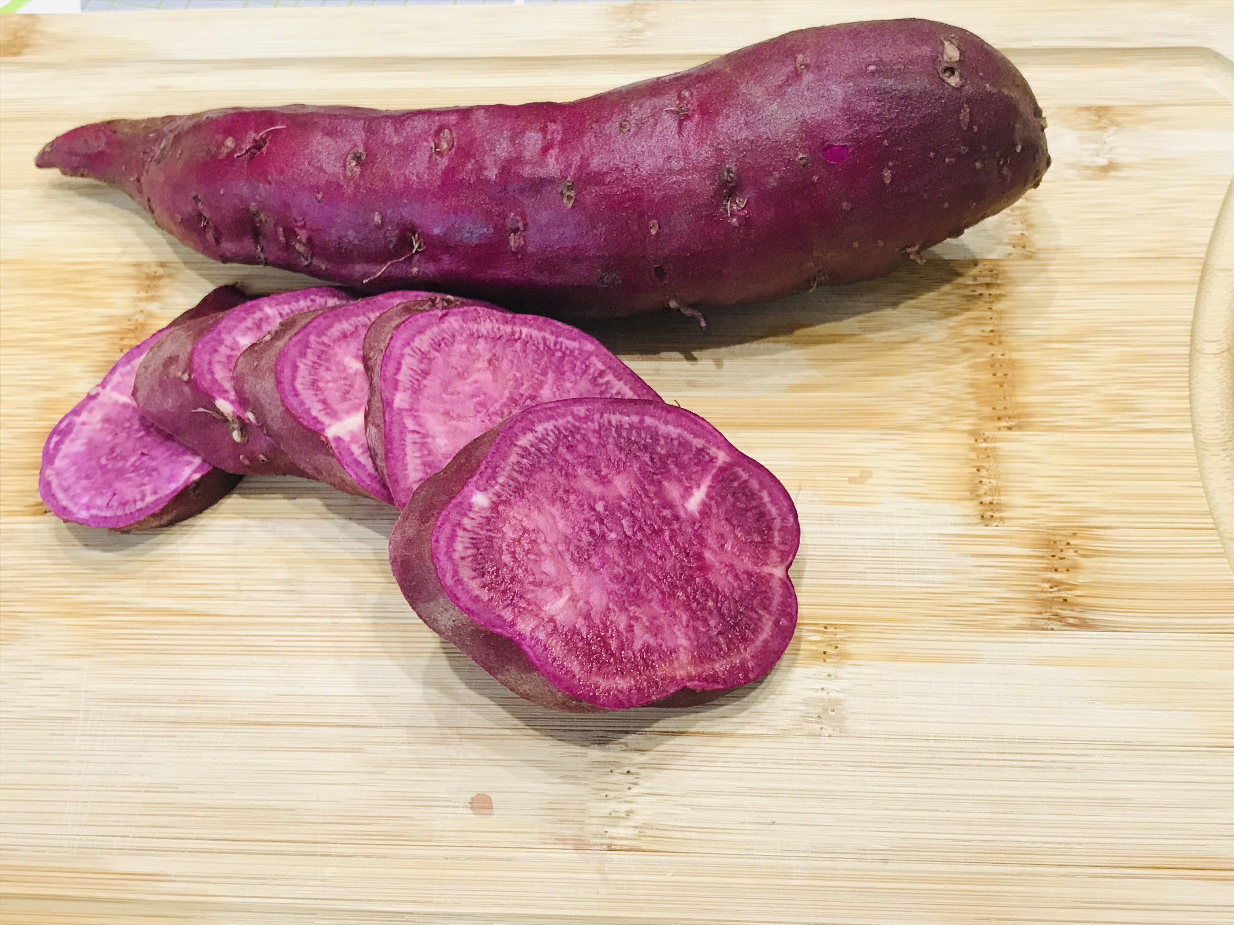Lila húsú édesburgonya. Nagy mennyiségben tartalmaz antioxidánsokat, remek gyulladáscsökkentő hatása van. Magas C-, B2-, B6-, valamint E-vitamin tartalma, gazdag olyan ásványi anyagokban mint kálium, a réz és a mangán. Alacsony a zsír- és a koleszterintartalma és a neve ellenére cukorbetegek is fogyaszthatják. Kiemelt beltartalmi értékei miatt ideális tápanyagot jelent fogyókúrázóknak, diétázóknak, sportolóknak, kisbabáknak.Kitűnő rost forrás. Íze leginkább a sültgesztenyéhez hasonlítható. VEGYSZERMENTES.