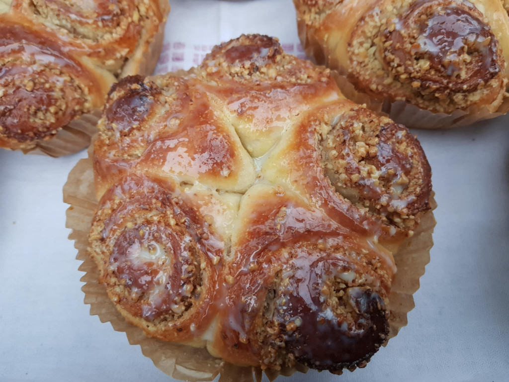 Finomlisztből készült vadkovászos diós kalács Összetevők: liszt, tej, cukor, tojás, dió, olivaolaj, bourbon vanília, bio citromhéj, só