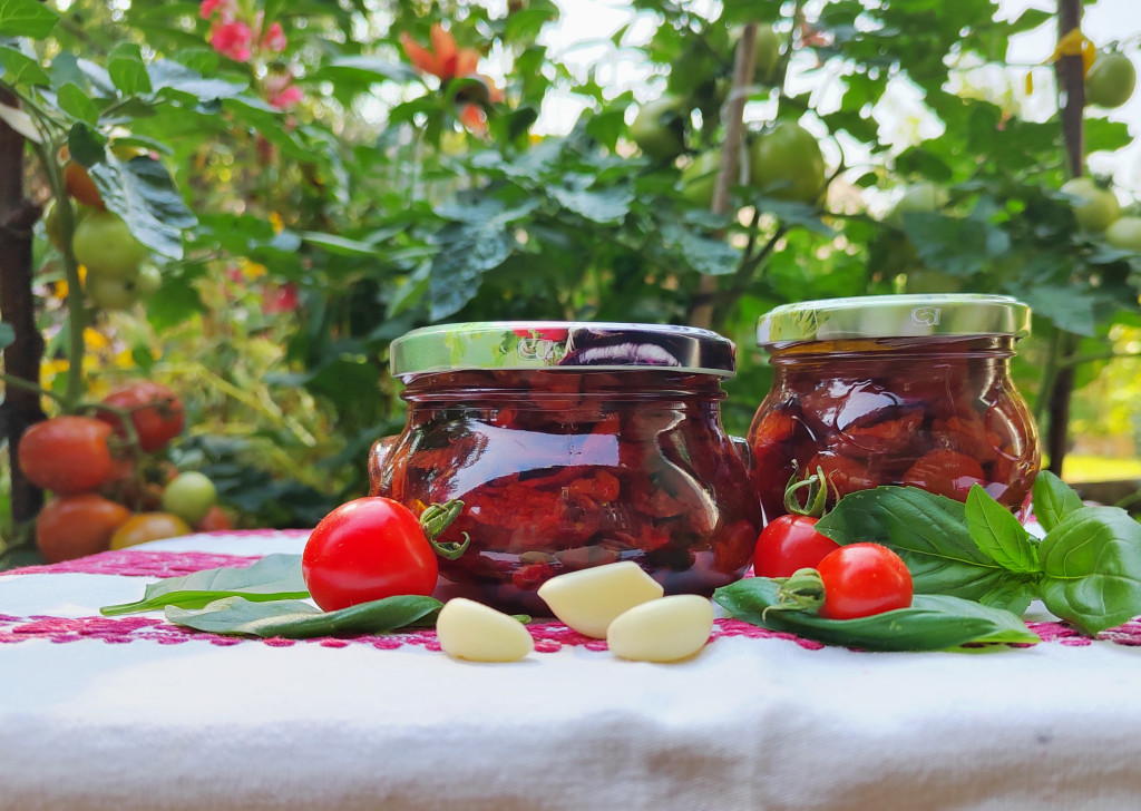 A szárított paradicsom olívaolajban eltéve egy igazi mediterrán kincs, ami selymes textúrát kap a fokhagymával és friss bazsalikommal ízesített, fűszeres olajtól.