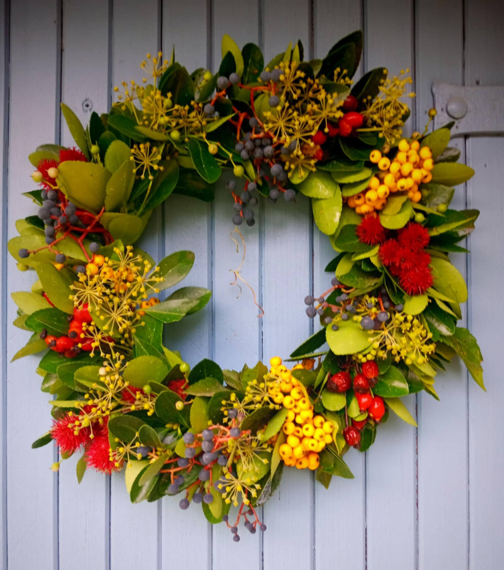 Színes, bogyókkal és termésekkel díszített koszorú, örökzöld alapon. Körülbelül 25 cm átmérőjű. Kültéren elég tartós, kibírja a karácsonyi koszorúig, kivéve, ha a madarak leeszik a bogyókat, amire volt már példa. :)